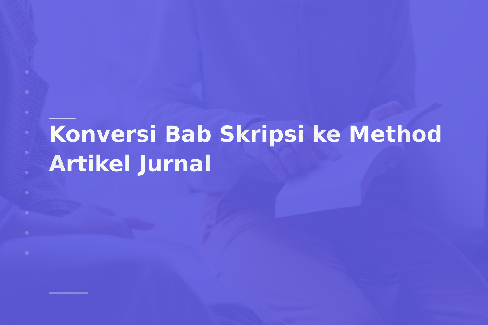 Mengonversi Bab Skripsi menjadi bagian Method untuk artikel jurnal menuntut keseimbangan antara detail teknis dan ringkasan yang sesuai format jurnal. Kunci keberhasilan adalah memetakan informasi esensial yang diperlukan untuk replikasi, memindahkan perhitungan rinci ke lampiran, dan melakukan pre-submission review serta cek plagiarisme. Dengan langkah-langkah sistematis dan penggunaan alat yang tepat (Turnitin, Mendeley, Grammarly), proses konversi dapat mempercepat peluang diterima di jurnal terindeks (mis. jurnal terindeks SINTA). Jika Anda memerlukan panduan personal atau pendampingan submit, tim Mahri Publisher siap membantu meningkatkan peluang publikasi Anda.