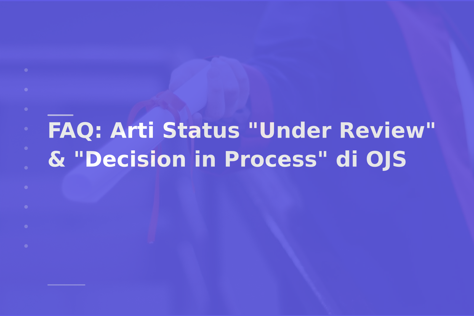 [FAQ] Apa Arti Status “Under Review”, “Decision in Process”, dll. di Sistem OJS? Bagi penulis, status di OJS sering menimbulkan kebingungan dan kecemasan—apakah maknanya sudah dievaluasi, masih menunggu reviewer, atau keputusan sedang disusun oleh editor? Artikel ini menjelaskan arti umum status OJS, tindakan yang dianjurkan penulis, dan contoh komunikasi praktis agar Anda lebih proaktif tanpa mengganggu proses editorial.
